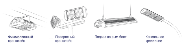 Способ крепления: 4 варианта установки - консоль, подвес на рым-болт, кронштейн поворотный, кронштейн жесткий.